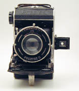 Precisa, um 1936 - Springkamera - Rollfilm 120 - Einzige Precisa nur für das Format 4,5x6 cm - Rodenstock Trinar 2,9 f=7,5cm - Newton Klappsucher mit Öffnungsmechanismus und ausklappbarer Maske für das kleinere Format - Verschluss Compur mit T,B,1,2,5,10,25,50,100,250 - Gehäuseauslöser an der Frontklappe welche das Objektiv trägt - Drahtauslöseranschluss am Verschluss